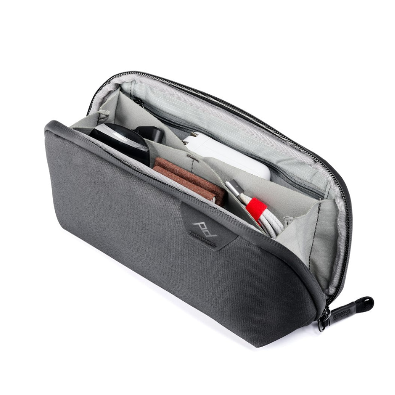 El Estuche Neceser Peak Design Tech Pouch es el compañero ideal para mantener tus cargadores, cables, powerbanks, memorias, auriculares y otros accesorios bien organizados y siempre a mano. Su diseño tipo acordeón permite abrirlo completamente para acceder fácilmente a todo su contenido, sin desorden ni enredos.