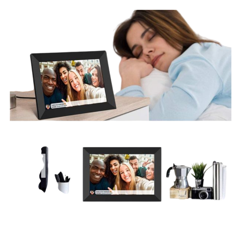 El Marco de Fotos Digital WiFi de 10 pulgadas ofrece una experiencia moderna y conectada para compartir recuerdos al instante. Con su pantalla táctil HD de 1280×800, disfrutarás de imágenes nítidas y colores vibrantes que resaltan cada detalle. Gracias a su conectividad WiFi, podrás recibir y mostrar fotos en tiempo real desde cualquier lugar mediante la app Frameo, lo que facilita compartir momentos con familia y amigos. Además, permite añadir subtítulos o captions en pantalla para acompañar cada imagen con un mensaje especial. Su diseño intuitivo y funcionalidad táctil lo convierten en una pieza práctica y elegante para el hogar. Ideal para mantener cerca a quienes más quieres, con la comodidad de un control directo desde tu smartphone.
