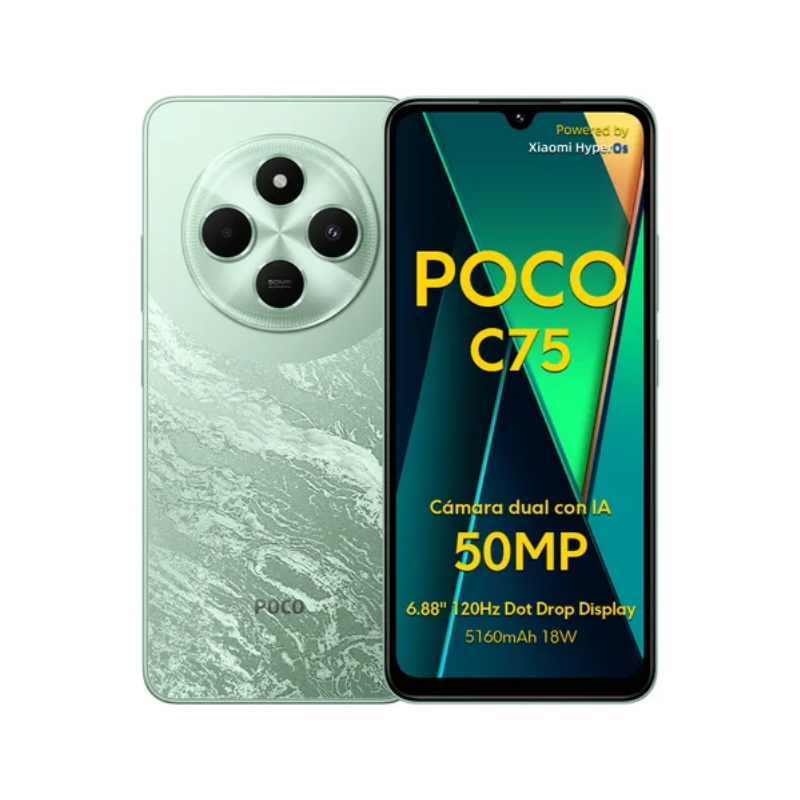 El POCO C75 combina potencia y eficiencia en un diseño accesible. Equipado con un procesador MediaTek Helio G81 y 8 GB de RAM ofrece una experiencia fluida tanto para tareas diarias como para juegos ligeros. Su amplio almacenamiento interno de 256 GB (ampliable vía microSD) te da espacio de sobra para fotos, apps y archivos.